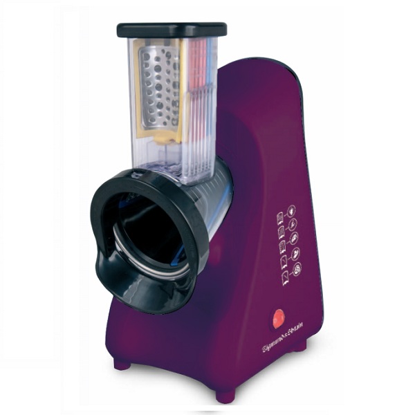 В комплект входят: сама мультирезка в пластиковом корпусе, на устойчивой основе, предотвращающей скольжение по влажной поверхности; раструб и толкатель, изготовленные из прочного прозрачного пластика; фиксатор насадок и конусообразный каркас со специальным разъемом, позволяющим легкую и быструю смену насадок. Внутри прозрачного толкателя вы найдете пять насадок из нержавеющей стали, для удобства выполненных в разных цветах: две терки (крупная и мелкая), терка-измельчитель, и две насадки для шинкования (для тонких и толстых ломтиков). Кроме этого, данный прибор имеет удобную ручку для переноски, достаточно длинный провод и двигатель с низким уровнем шума.